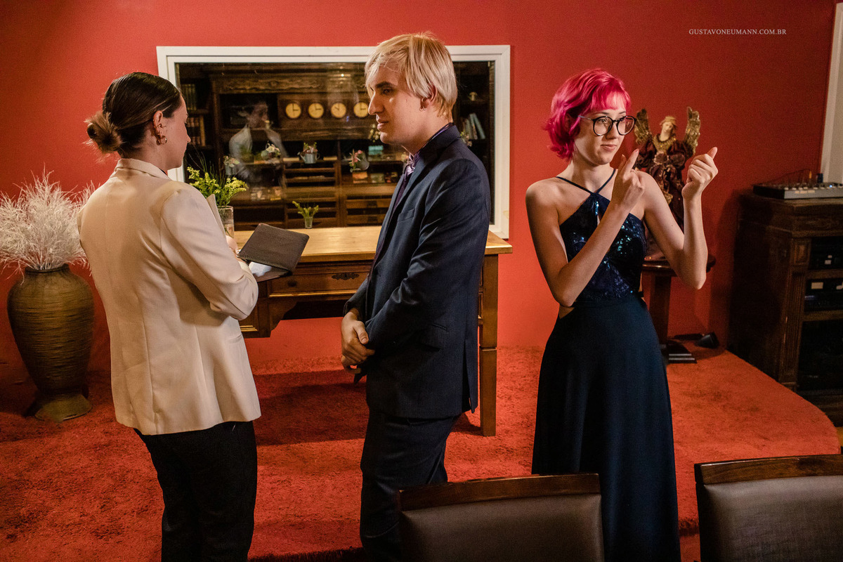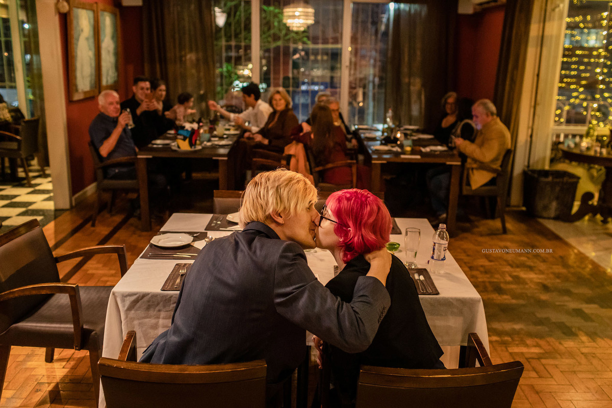 O lugar escolhido para o casamento no civil e o jantar foi o Restaurante Villa D’Assisi, em São Leopoldo. Um lugar único, conhecido pelos cafés e livros, e que faz parte da vida deles.