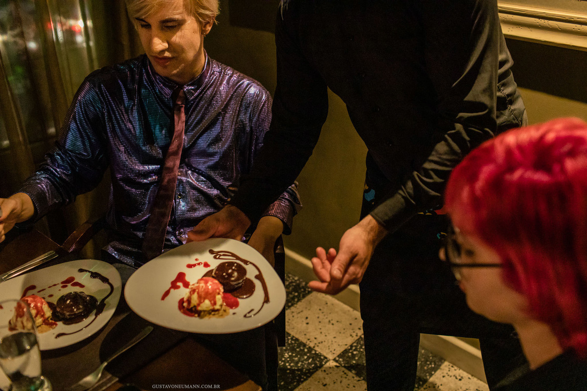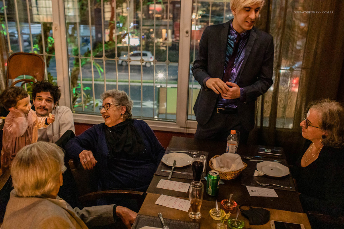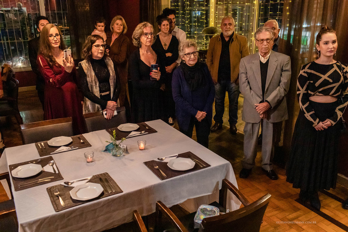 pequeno em um restaurante. Queremos registrar só o momento do jantar/festa mesmo, não teremos uma grande preparação