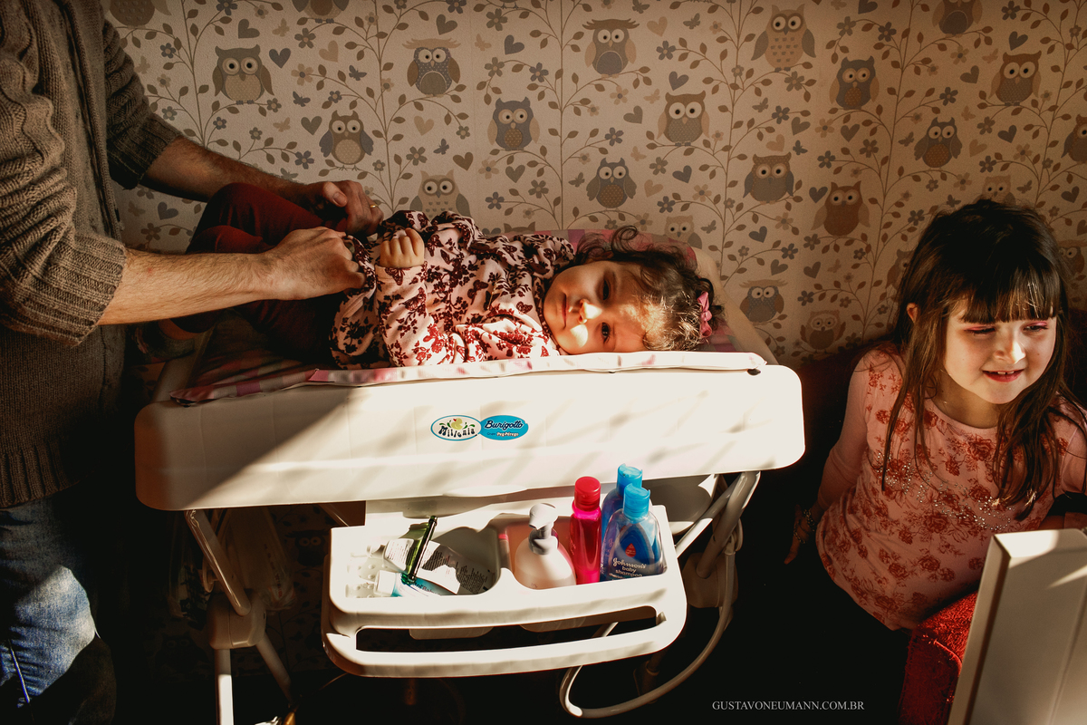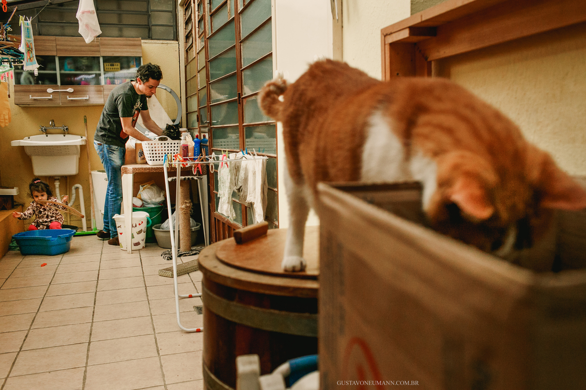 Nesse trabalho, a proposta é fotografar a rotina da família. E algumas pessoas já me perguntaram qual é “a graça” em fotografar rotinas, pois elas não oferecem nada de mais! Afinal, é somente rotina!